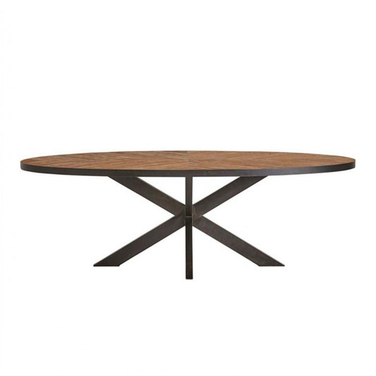 Oválný jídelní stůl Jamie z teakového dřeva a kovu