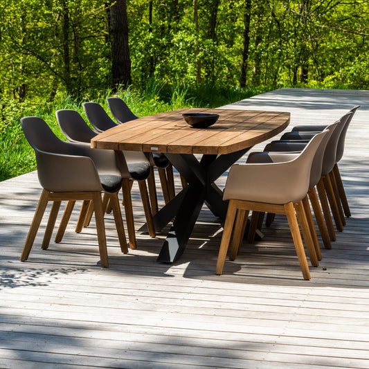 Venkovní jídelní stůl TIMOR (zaoblený) z teakového dřeva a antracitového hliníku