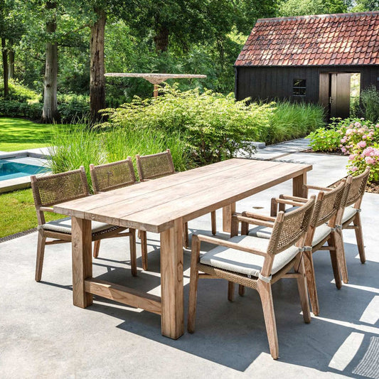 Venkovní jídelní stůl DELMON z přírodního regenerovaného teaku